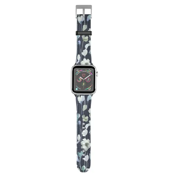 Ninola Design Watery Abstract Flowers Navy 38mm/40mm Silver Apple Watch Band - Society6