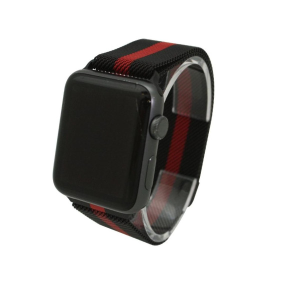 Olivia Pratt Black Red Printed Mesh Apple Watch Band 38Mm