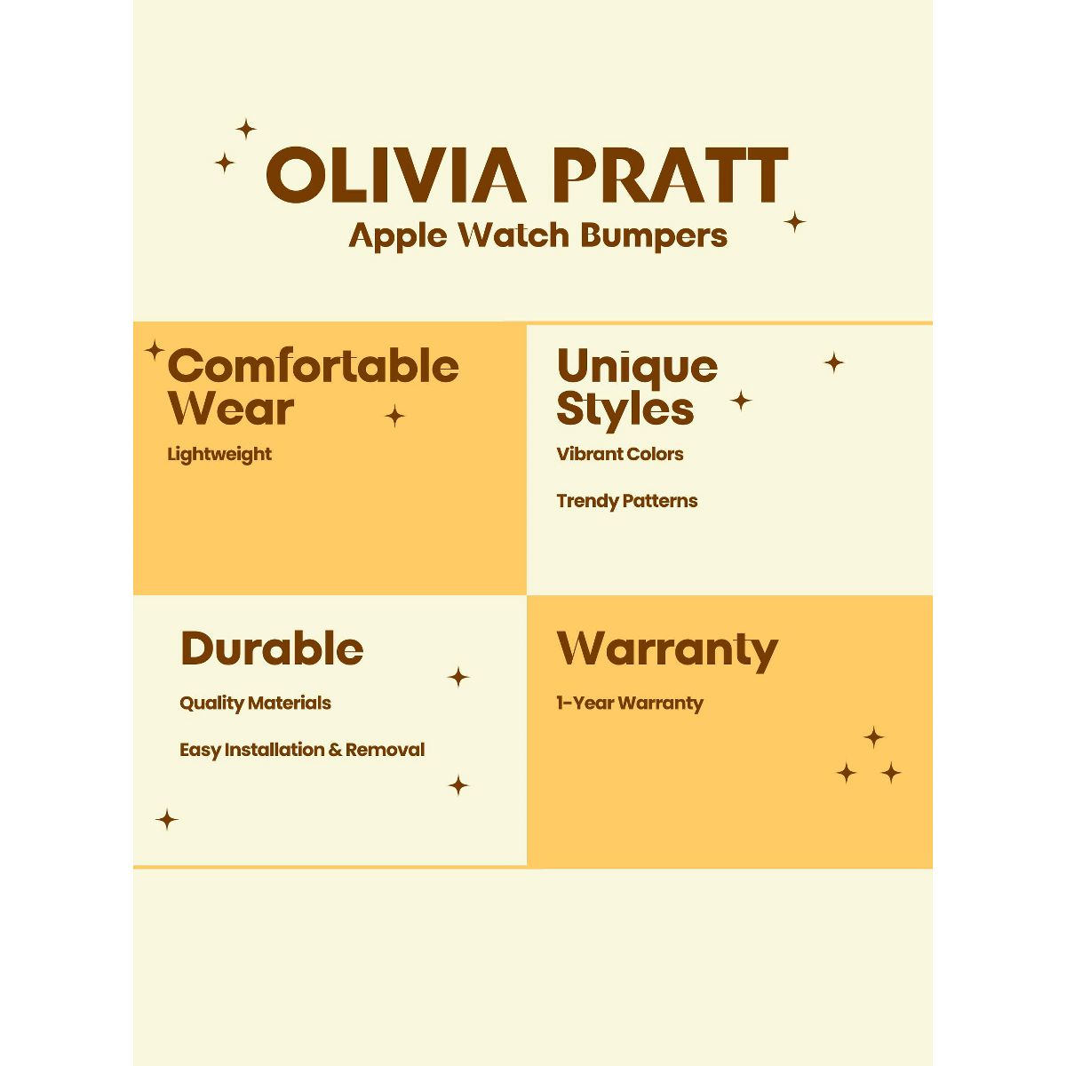 Olivia Pratt is always looking after new designs to improve your style! Using the best quality materials available in all of our products to ensure long durability in your every day wear. Please be aware, color vibrancy of the product might change from device to device. If you have questions we're here to help!