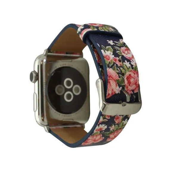 Olivia Pratt Navy Floral Leather Animal Print Apple Watch Band 42Mm