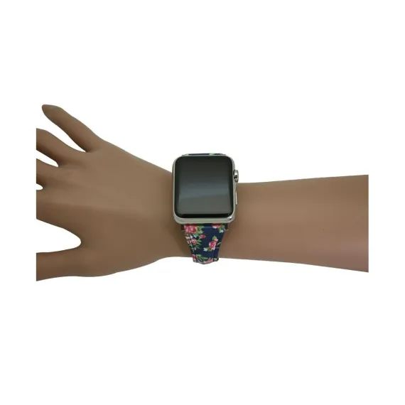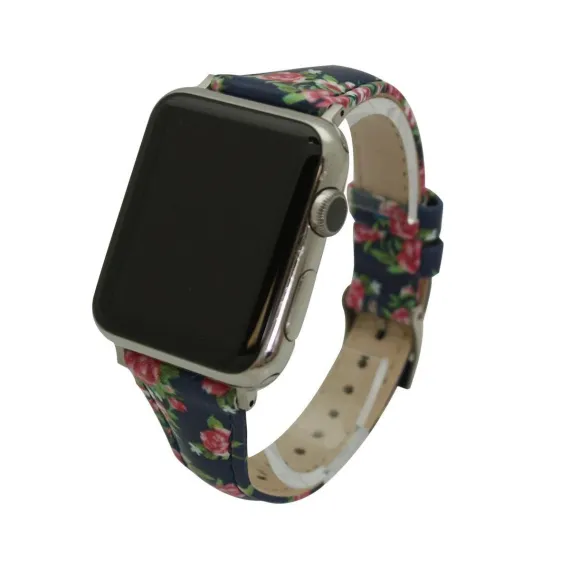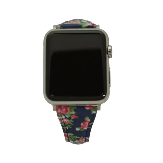 Olivia Pratt Navy Floral Printed Skinny Leather Apple Watch Band 38Mm