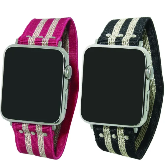 Olivia Pratt Printed Elastic Strap Apple Watch Band - Hot Pink Stripe, Black Stripe, 38mm
