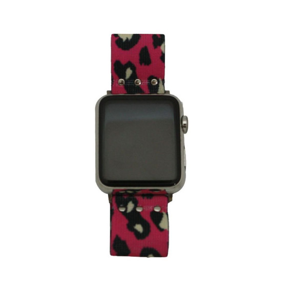 Olivia Pratt Printed Elastic Strap Apple Watch Band - Hot Pink Stripe, Black Stripe, 38mm