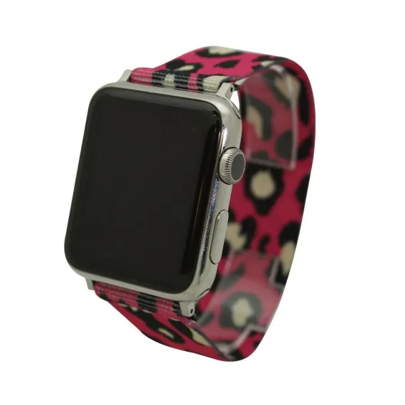 Olivia Pratt Printed Elastic Strap Apple Watch Band - Hot Pink Stripe, Black Stripe, 38mm