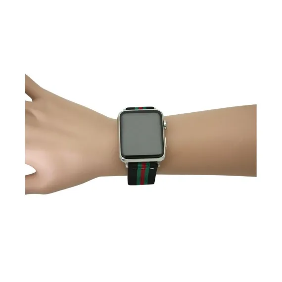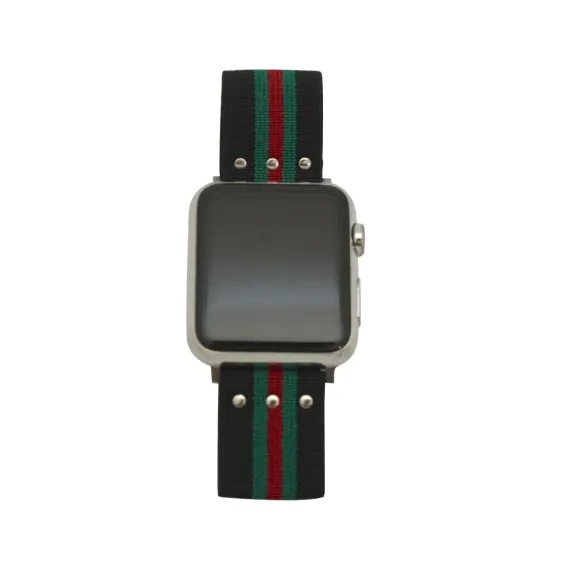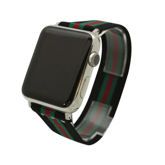 Olivia Pratt Printed Elastic Strap Apple Watch Band - Hot Pink Stripe, Black Stripe, 38mm
