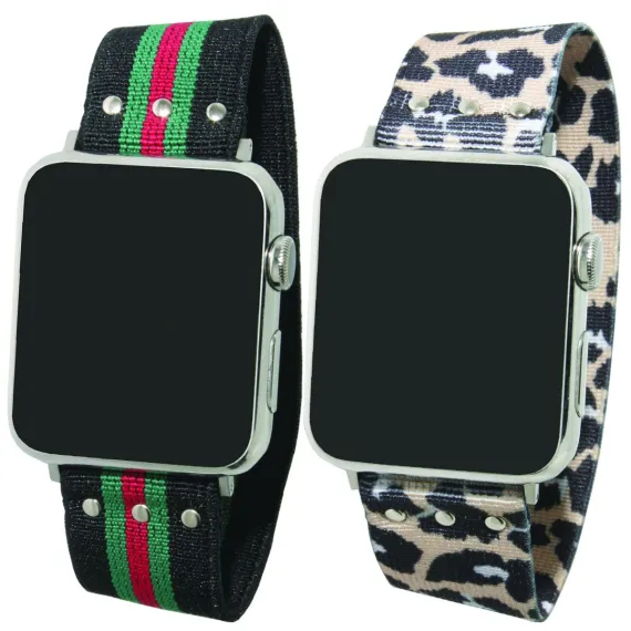 This 2-pack Elastic Oversized Apple Watch Band set from Olivia Pratt is absolutely adorable and eye-catching! Featuring two unique printed, stretchy elastic apple watch bands. Flat band size is 6.5 inches long and can stretch up to 9 inches long if needed.