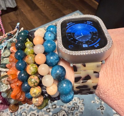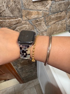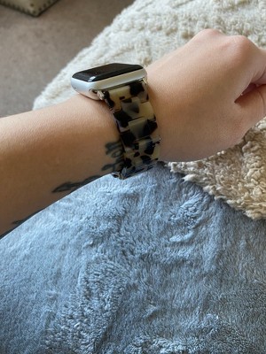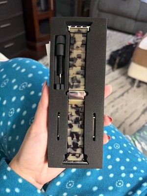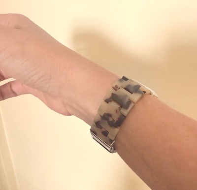 I received this item for free in exchange for my honest review. I ordinarily wear my Apple Watch with a silicone band, but I was excited to try this resin band for the print. The tortoise looks nice and I love how smooth it is against my skin. I like that the watch came with a link-remover because I had to remove 3 links and I like that I can adjust it if I decide that I want to wear it tighter/looser. I had a little trouble removing the links and getting the hang of it, and I had one pin that bent. I also had to find a link on their website to learn how to adjust the band, but I wished I had a hard copy of instructions to reference because I didn't have internet access when I first tried to put my band on my watch. I also noticed that the link-edge matches with the clasp and causes the watch to not sit perfectly round around my wrist.