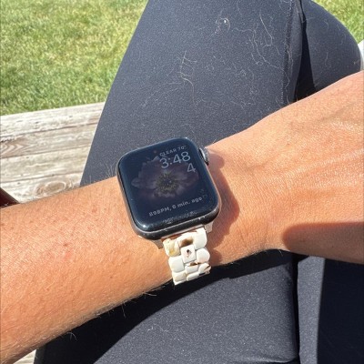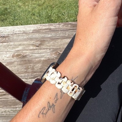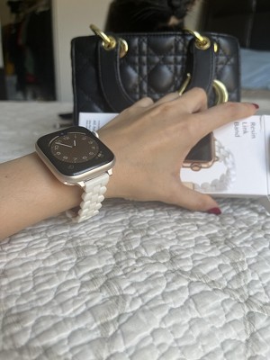 This POSH resin band is a stunning upgrade! I was tired of my plain old band, and this one is the perfect, elegant solution. The fact that it came with an adjuster tool made sizing so easy! I easily removed three links for a perfect fit. It feels so chic and can suit every outfit. This band was the ideal gift! It is very pretty. I think the white resin makes it look expensive and classy.