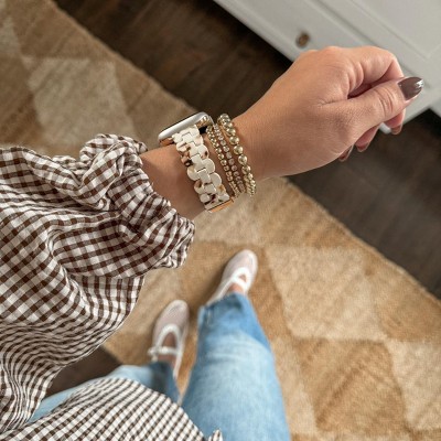 Posh Tech Ellen Resin Tortoise Band for Apple Watch, this beauty features a scalloped edge and marbled coloration providing a neutral yet special element to the design. Elle is made of a high-quality resin, the links attach to one another in a seamless and elegant way, giving the band a luxurious and elevated look and feel. The marbling effect of Elle's design provides a beautiful blending of neutral tones that are sure to complement any look, be it day or night. The band comes with a resizing tool which allows you to remove excess links to achieve the perfect fit for your wrist.