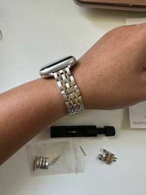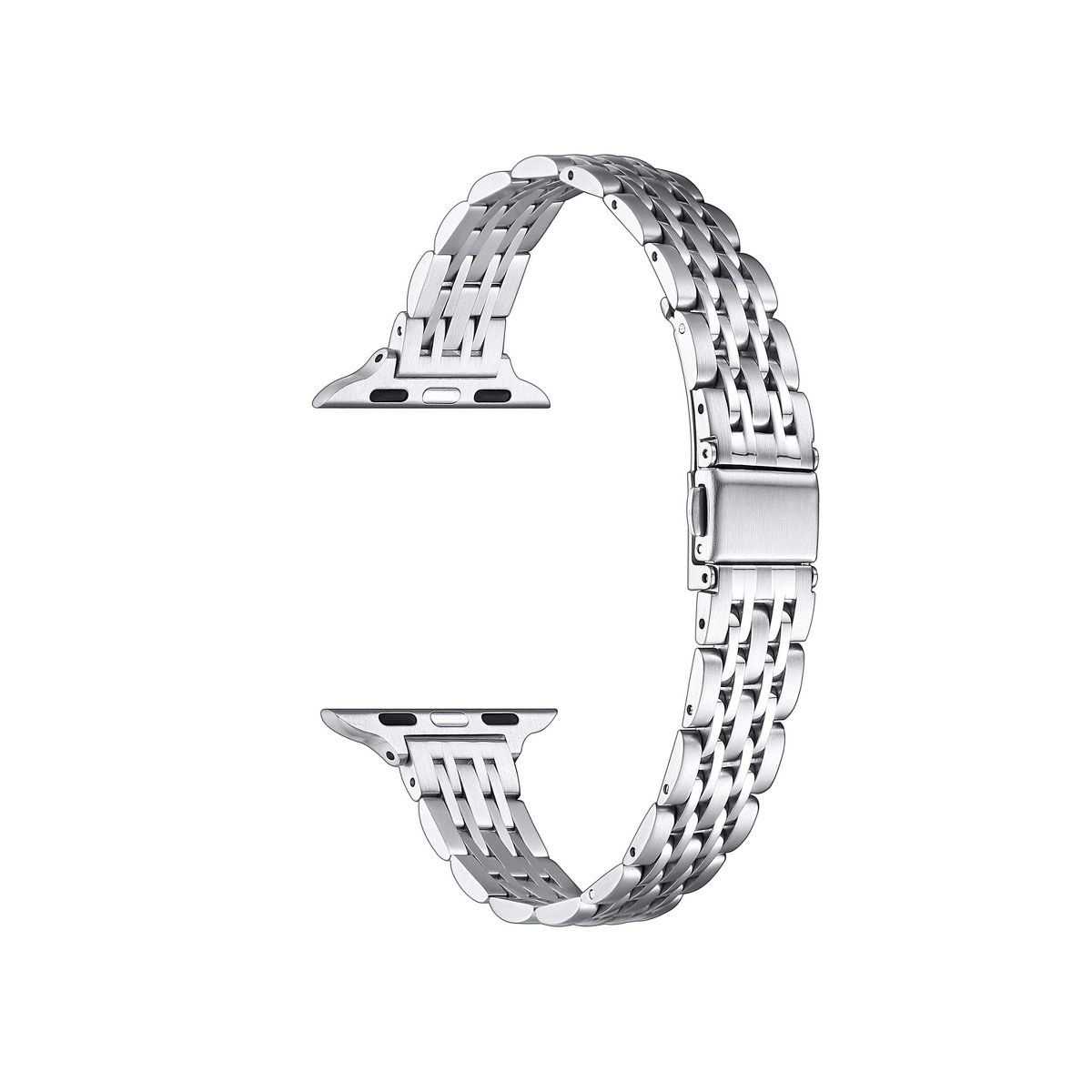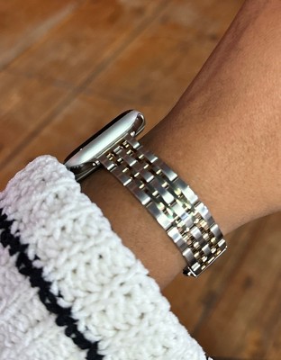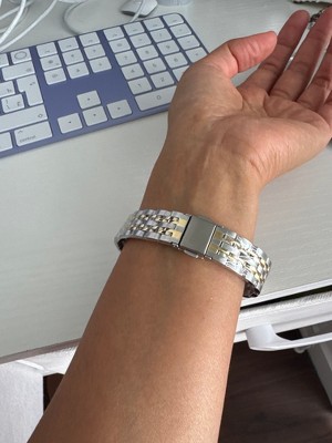 Posh Tech Stella Skinny Stainless Steel Band for Apple Watch, like her beloved sister, this slimmer version of Stella will be sure to wow any one you encounter. With the same sleek and sophisticated appeal as the classic Stella, but for those wanting a more delicate and feminine look. Stellas double button clasp locks on your watch easily and securely, ensuring a smooth wear. This band comes with a size ajusting tool which allows you to remove excess links to achieve the perfect fit for your wrist, further personalizing your Apple Watch, and making it even more you!