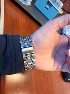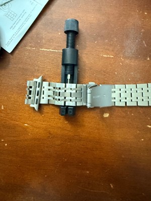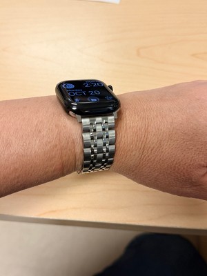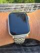 The two tone metal in Stellas design gives off the sophistication of a luxury watch while maintaining the comfort of your Apple Watch. Stellas double button clasp locks on your watch easily and securely, ensuring a smooth wear. This band comes with a size ajusting tool which allows you to remove excess links to achieve the perfect fit for your wrist, further personalizing your Apple Watch, and making it even more you!