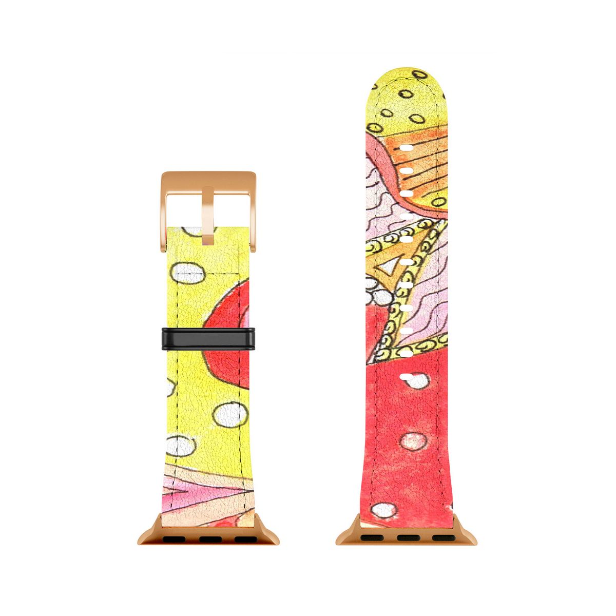 Be the leader of the band. The Deny Designs Apple Watch band features a curated selection of designs on a vegan leather strap and are available with four different hardware colors; gold, rose gold, silver and black. They're perfect for everyday wear with a soft suede-like underside and, you can easily swap in new bands using the quick release springs. And, the best part? Every purchase pays the artist who designed itsupporting creativity worldwide!