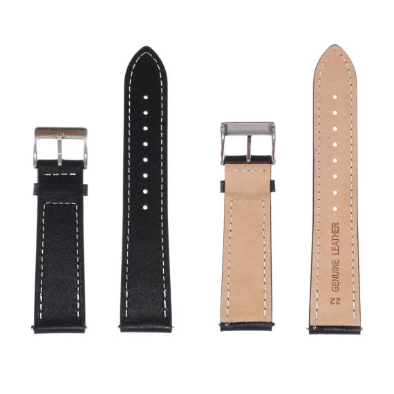 Item Function: 1. The watch band adopts a standard four-layer process. Its top layer is made of cowhide and can form a unique texture when wearing. It is moisture-proof and durable. 2. All sides of cowhide watch bands are stitched to ensure its durability. 3. This watch strap is available in different colors, which you can choose to meet your various needs. 4. The watch band fits most smart and traditional watches. Precision cut eyelets allow for individualized adjustment to fit properly. Quick Release design saves your time that makes it fast and simple to install and replace your watch band. Specification: Color: Black; Material: Cowhide, Metal; Interface Width: 22mm / 0.87"; Package List: 1 Pc Watch Band.