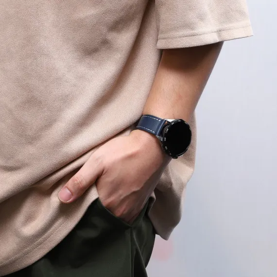Item Function: 1. The watch band adopts a standard four-layer process. Its top layer is made of cowhide and can form a unique texture when wearing. It is moisture-proof and durable. 2. All sides of cowhide watch bands are stitched to ensure its durability. 3. This watch strap is available in different colors, which you can choose to meet your various needs. 4. The watch band fits most smart and traditional watches. Precision cut eyelets allow for individualized adjustment to fit properly. Quick Release design saves your time that makes it fast and simple to install and replace your watch band. Specification: Color: Navy Blue; Material: Cowhide, Metal; Interface Width: 22mm / 0.87"; Package List: 1 Pc Watch Band.