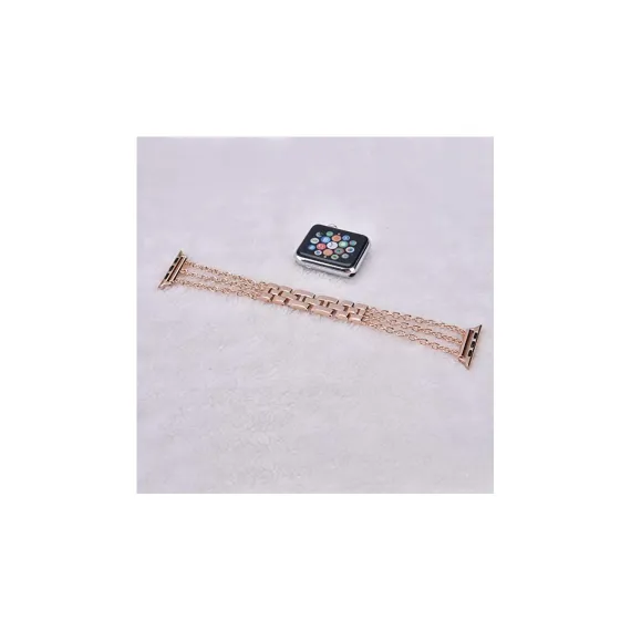 Worryfree Gadgets Alloy Metal Fashion Dressy Chain Band Compatible with Apple Watch Band Color: Rose Gold. Alloy metal iWatch Strap Compatible iWatch Size: 38mm 40mm 41mm and 42mm 44mm 45mm 49mm Compatible iWatch Series: Series 8, Series 7, Series 6, Series 5, Series 4, Series 3, Series 2, Series 1 and Series SE Length 183mm, can be adjusted shorter Beautiful Design and Elegant Dressy band for any occasion. Perfect gift for Her 1. Perfect design: 3 chains dressing up your iWatch like a luxurious Jewelry, Bring you the ultimate elegance. Perfect matching any occasion, such as wedding, shopping and party. 2. Easy to be adjusted length, just take out link to adjust size.