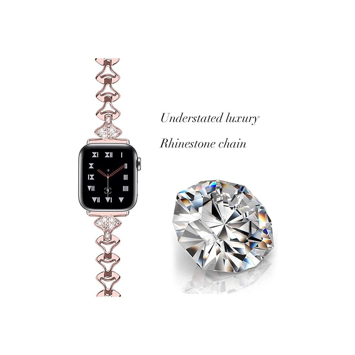 Bling Alloy Metal Bands Compatible with Apple Watch Band 38mm 40mm 41mm and 42mm 44mm 45mm 49mm iWatch Series 8/7/6/5/4/3/2/1 and SE. Dressy Jewelry Diamond Cuff Bracelet Bangle Wristband for Women Girls, Easy to adjust Apple Watch Size: 38mm/40mm/41mm and 42mm/44mm/45mm Compatible with Apple Watch Series: Series 8, 7, 6, 5, 4, 3, 2, 1 & SE High quality alloy metal, well polished, dressy Apple Watch band made of premium alloy metal and wrapped in high-quality rhinestones, the inlaid diamond is firm and reliable, not easy to fall off, each small diamond shines with dazzling light, making people unable to take their eyes off. Unique design makes it a sleek and robust daily companion.