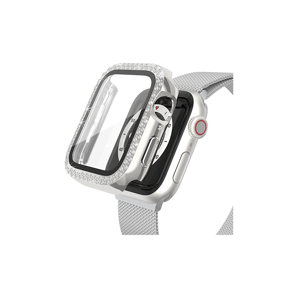 "Sparkling Bling Design: Double row dazzling crystal rhinestone diamonds are embedded in the Apple Watch Case, perfect for upgrading casual outfits or setting off luxurious evening wear.