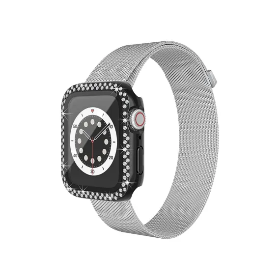 "Sparkling Bling Design: Double row dazzling crystal rhinestone diamonds are embedded in the Apple Watch Case, perfect for upgrading casual outfits or setting off luxurious evening wear.