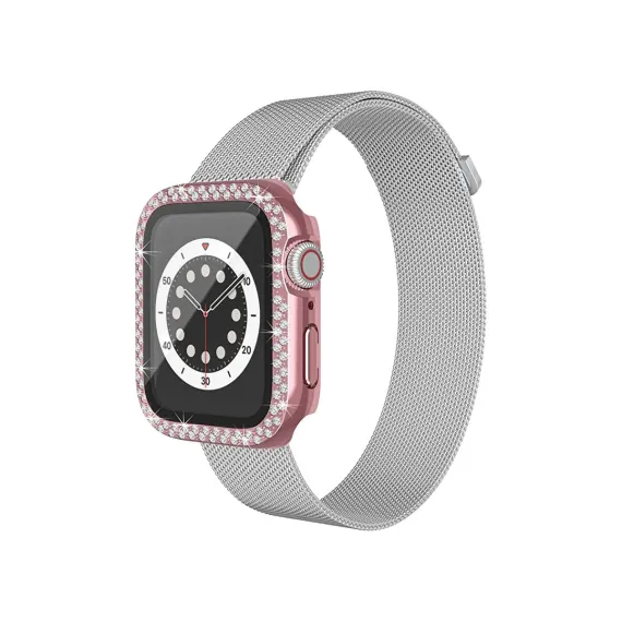 "Sparkling Bling Design: Double row dazzling crystal rhinestone diamonds are embedded in the Apple Watch Case, perfect for upgrading casual outfits or setting off luxurious evening wear.