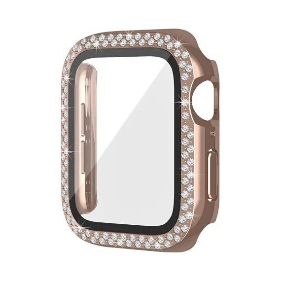 "Sparkling Bling Design: Double row dazzling crystal rhinestone diamonds are embedded in the Apple Watch Case, perfect for upgrading casual outfits or setting off luxurious evening wear.