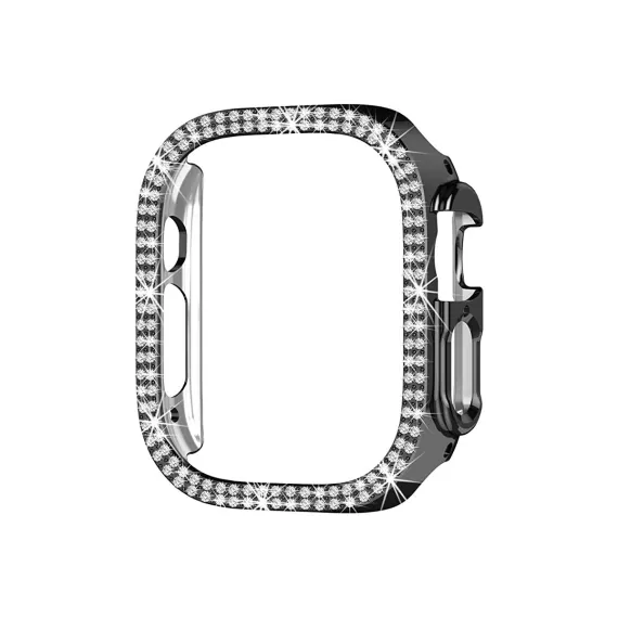 Worryfree Gadgets Bling Case Compatible with Apple Watch Ultra 49mm Case Bling Crystal Shockproof Protective Frame Bumper Case Cover (Black)