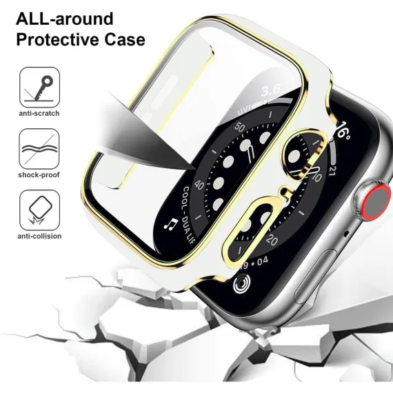 Worryfree Gadgets Bumper Case with Screen Protector for Apple Watch 45mm, Black/Gold - 45MM