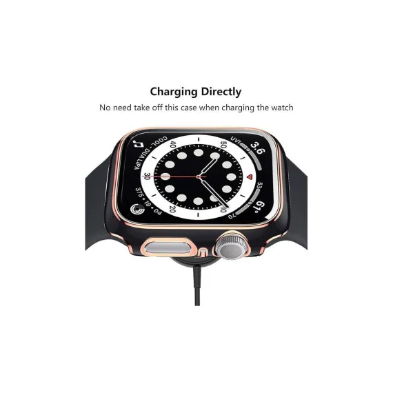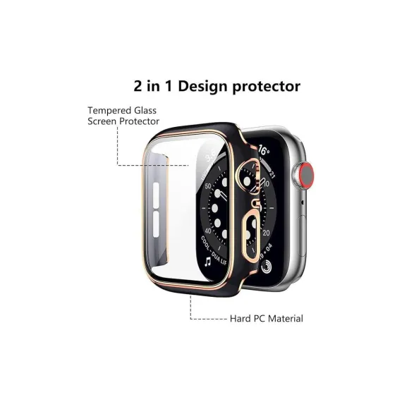 Worryfree Gadgets Bumper Case with Screen Protector for Apple Watch 45mm, Black/Gold - 45MM