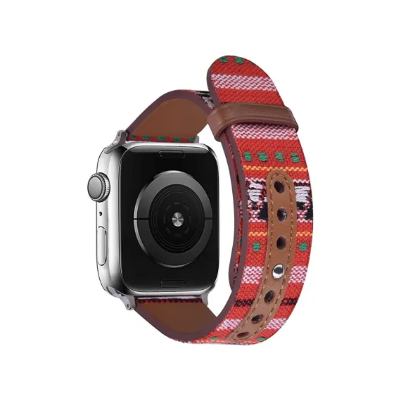 Compatible with Apple Watch Bands Soft comfortable lightweight Canvas and Leather strap, meticulous tailoring process is no irritation on the skin. This Unisex Apple Watch Strap is perfect for your family and friends. Compatible iWatch Series: 8, 7, 6, 5, 4, 3, 2, 1 & SE Compatible iWatch Band Size: 38mm, 40mm, 41mm and 42mm, 44mm, 45mm, 49mm Made of premium quality fabric nylon materials by knitting craftsmanship?the part that touches the wrist is the leather material, ensure a comfortable and breathable feeling. Ethnic style is the best companion in daily time and outdoor sports activity. The wrist size can be freely adjusted with multiple alternative 7 holes, providing the best wearing experience. Stainless steel nail provides a simple yet elegant look. Lightweight nylon wristband with textured finishing dresses up your Smart Watch.