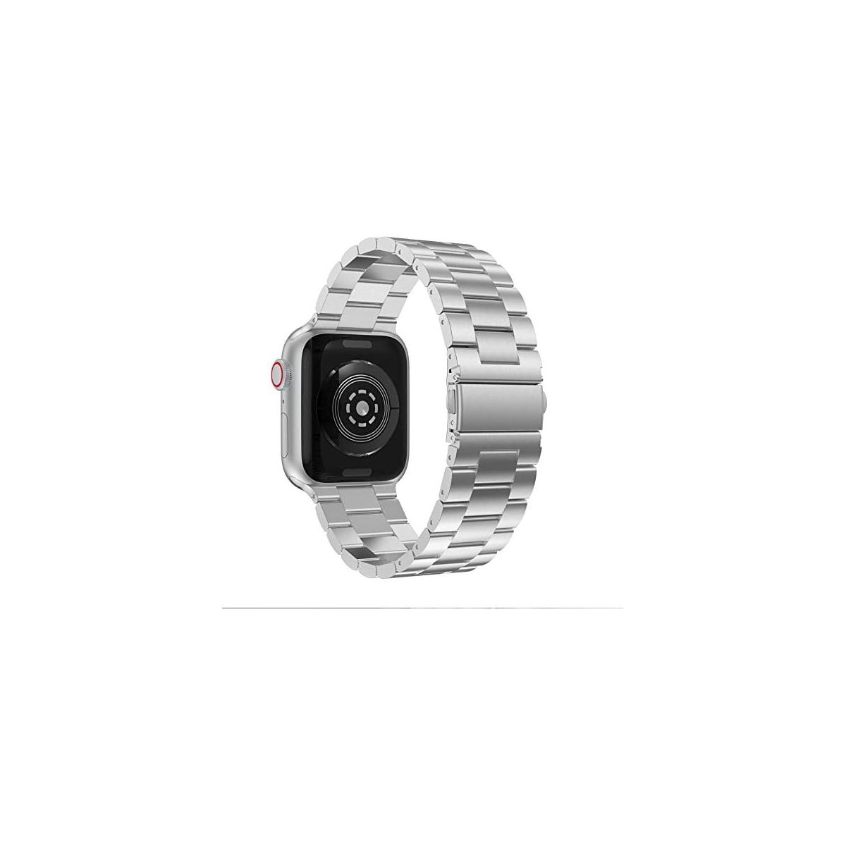 The band is made from upgrade satin-brushed stainless steel material with secure folding buckle, crafted from superb polishing and electroplating process with advanced workmanship, the masculine, strong, flowing lines and the glossy finish with sharp aesthetic gives its appearance a harmonious visual unity. Secure Folding Buckle for Apple Watch band replacement adopts refined double buttons folding clasp design, double firmly closed to avoid your Apple watch loose automatically and fall down by accident. You only need to press the release buttons on both sides of the buckle to open the watch straps simply.