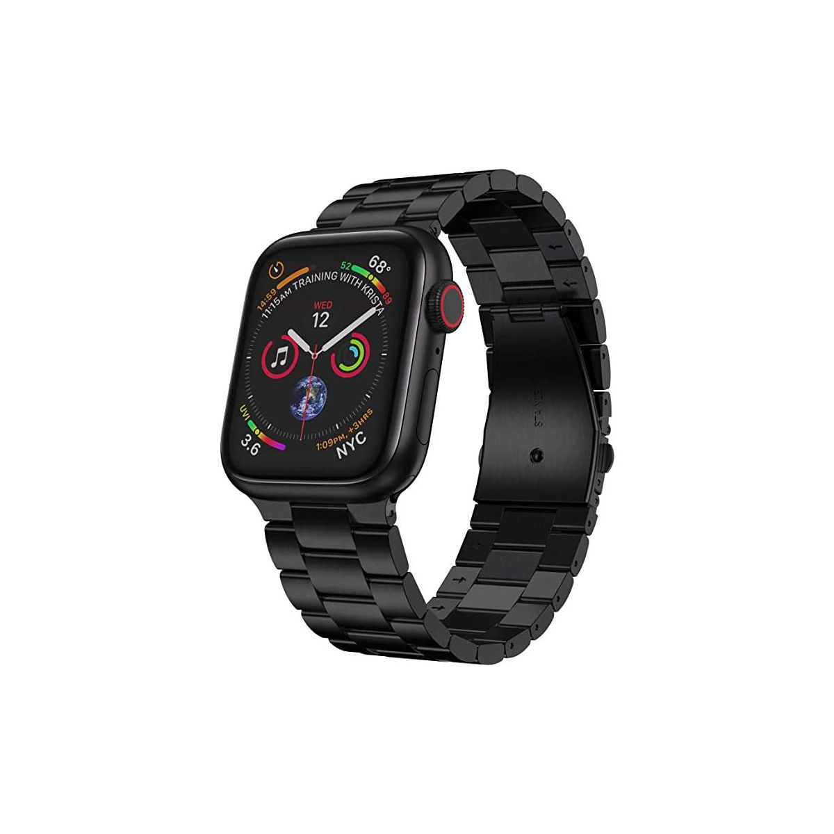 The band is made from upgrade satin-brushed stainless steel material with secure folding buckle, crafted from superb polishing and electroplating process with advanced workmanship, the masculine, strong, flowing lines and the glossy finish with sharp aesthetic gives its appearance a harmonious visual unity. Secure Folding Buckle for Apple Watch band replacement adopts refined double buttons folding clasp design, double firmly closed to avoid your Apple watch loose automatically and fall down by accident. You only need to press the release buttons on both sides of the buckle to open the watch straps simply.