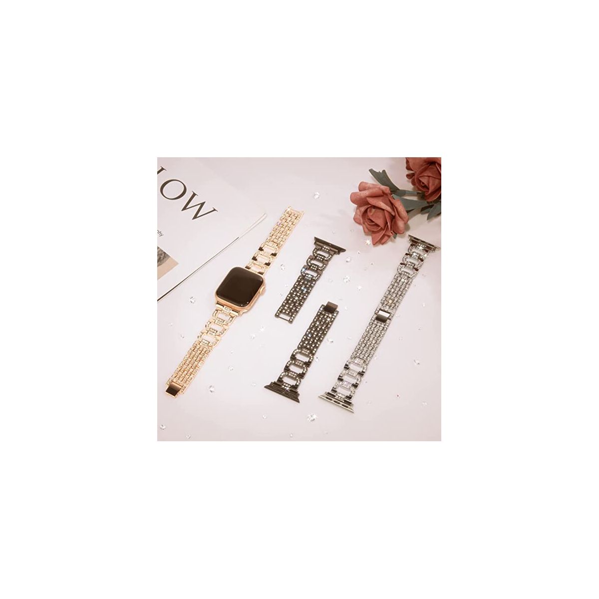 Worryfree Gadgets Metal Band Compatible with Apple Watch Band Size 38mm/40mm/41mm and 42mm/44mm/45mm Compatible with Apple Watch Series 8 7, 6, 5, 4, 3, 2, 1 & SE Make a style statement with this high-quality stainless steel band that’s set with full rhinestones. It’s sure to attract tons of compliments and last you for a long time to come. It has folding clasps in band to ensure a snug fit for full comfort. You can resize the band by removing a folding clasp with no tools required.