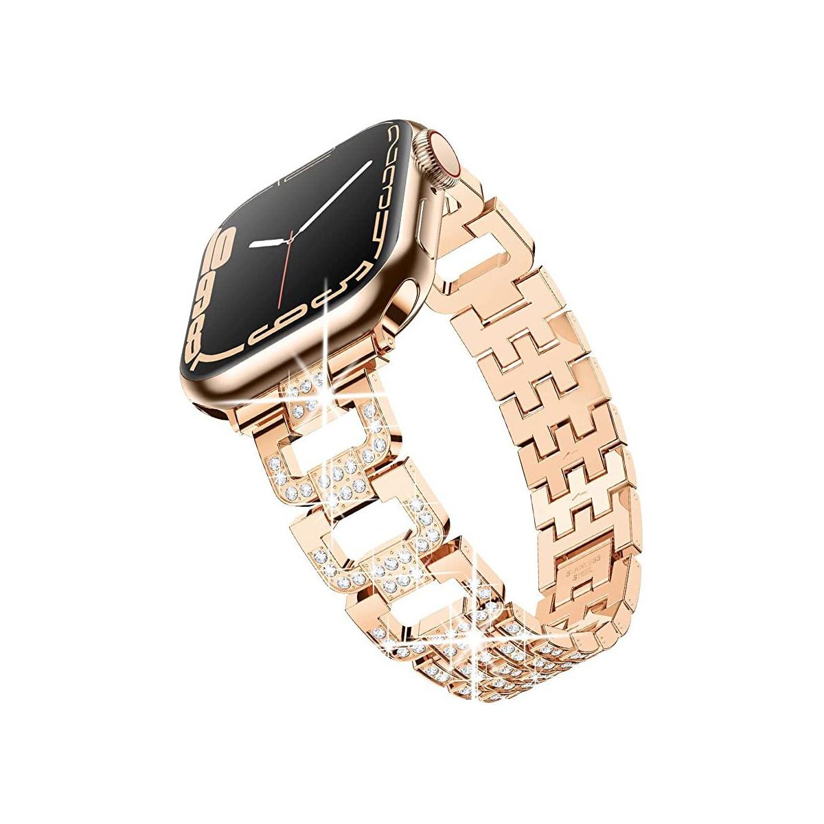 Worryfree Gadgets Dressy D-Links Metal Band with Full Bling Links for Apple Watch 38/40/41mm-Rose Gold