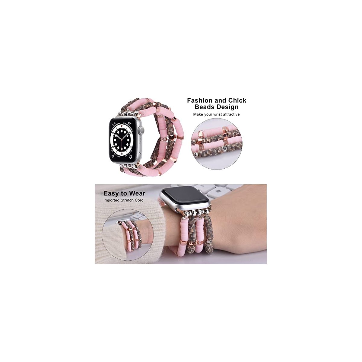 Worryfree Gadgets Fashion Preppy Stack Handmade Elastic Band for Apple Watch 38/40/41mm - Baby Pink