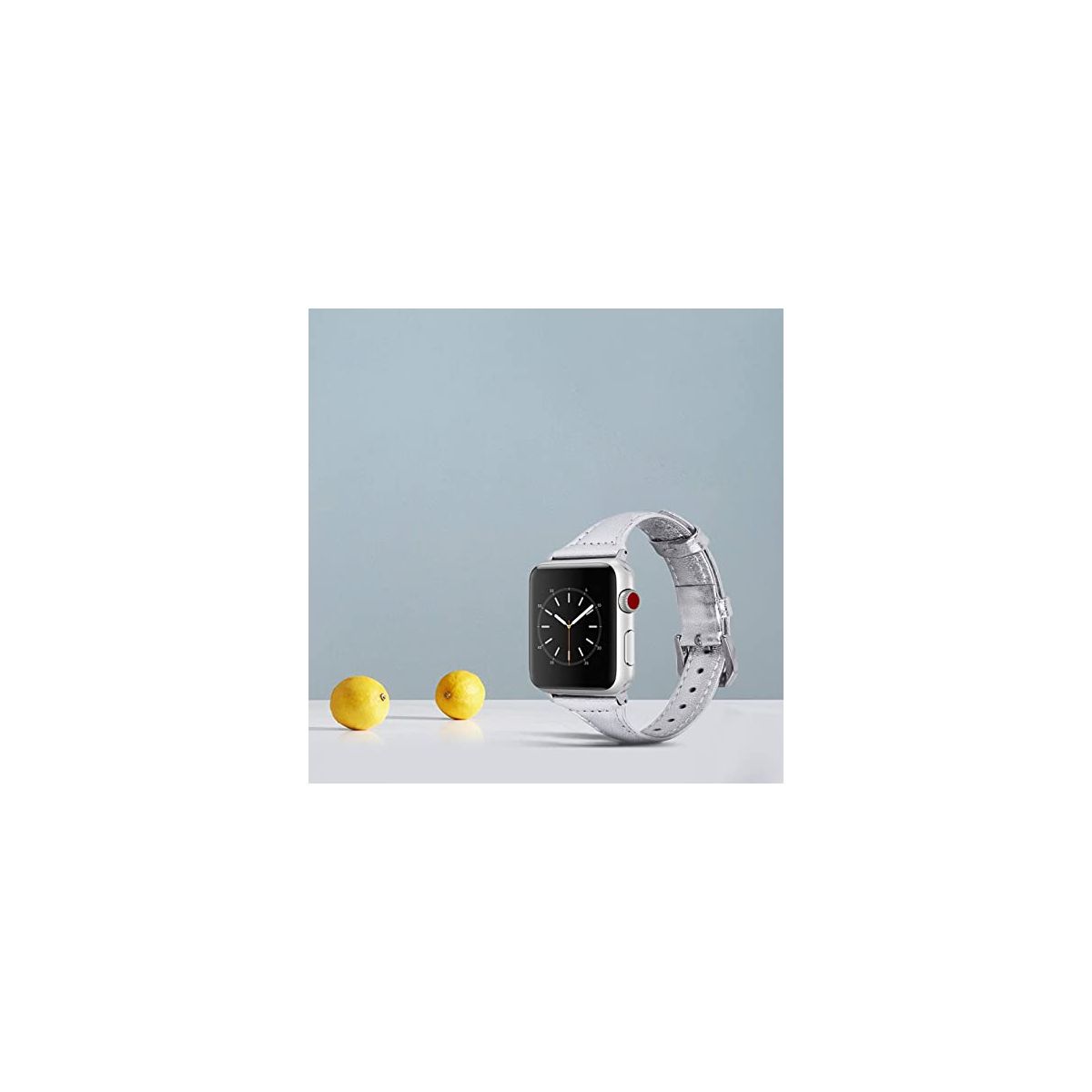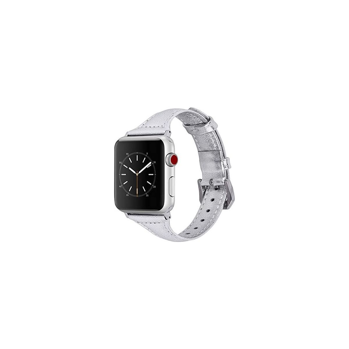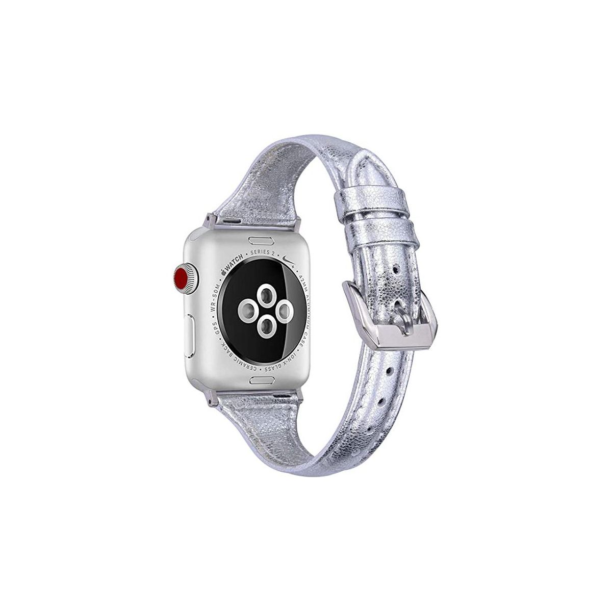 Worryfree Gadgets Genuine Leather Replacement with Apple Watch, Band for iWatch Series 8 7 6 5 4 3 2 1 Dressy Bracelet - 38/40/41mm - Silver