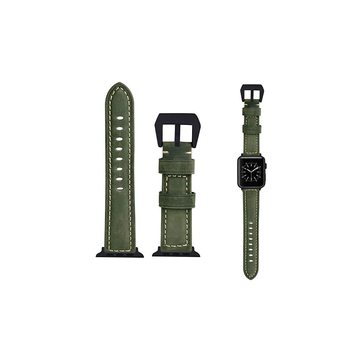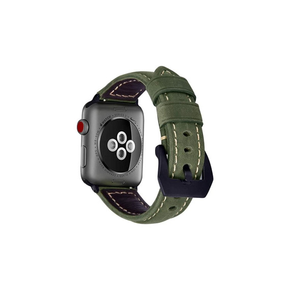 Worryfree Gadgets Leather Apple Watch, Band for iWatch Series 8 7 6 5 4 3 2 1 Genuine Leather Replacement Band Bracelet - 38/40/41mm - Green