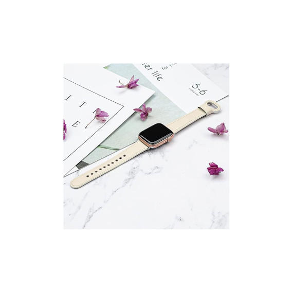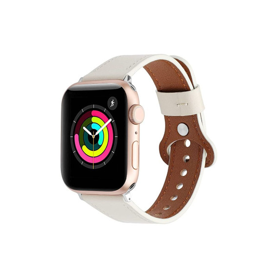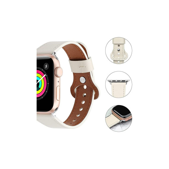 Worryfree Gadgets Leather Band for Apple Watch 38/40/41mm, 42/44/45mm iWatch Band Series 8 7 6 5 4 3 2 1 & SE - 42/44/45mm - Beigh White