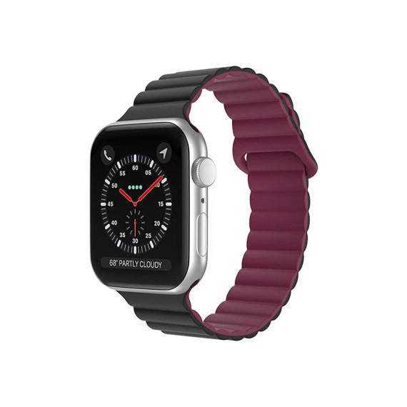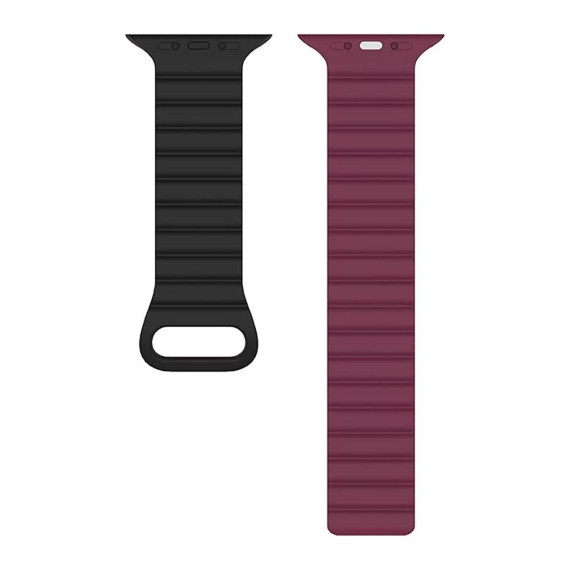 Worryfree Gadgets Magnetic Silicone Band for Adjustable Loop Strap Magnetic Closure iWatch Series 8 7 6 5 4 3 2 1 SE - 38/40/41mm - Black/Wine Red