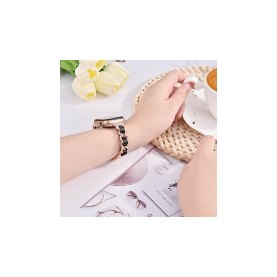Fit All Type of Apple Watch-The slim thin chain Apple watch band bracelet compatible with all 41mm/40mm/38mm models include Apple watch series 8 (2022) series 7(2021),Apple watch series SE, Apple watch series 6, Apple watch series 5, Apple watch series 4, Apple watch series 3, Apple watch series 2, Apple watch series 1,