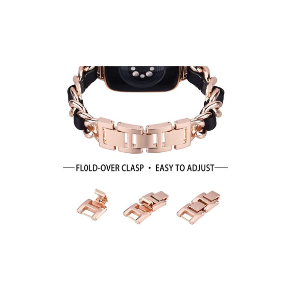 Worryfree Gadgets Metal & Leather Link Band for Apple Watch 38/40/41mm, 42/44/45mm iWatch Band Series 8 7 6 SE 5 4 3 2 1 - 38/40/41mm - Rose Gold