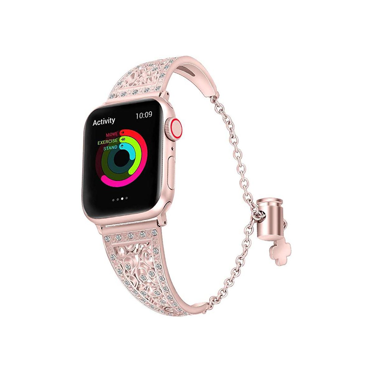 "Bling Alloy Metal Bands Compatible with Apple Watch Band 38mm 40mm 41mm and 42mm 44mm 45mm 49mm iWatch Series 8/7/6/5/4/3/2/1 and SE. Dressy Jewelry Diamond Cuff Bracelet Bangle Wristband for Women Girls, Easy to adjust Apple Watch Size: 38mm/40mm/41mm and 42mm/44mm/45mm Compatible with Apple Watch Series: Series 8, 7, 6, 5, 4, 3, 2, 1 & SE High quality alloy metal, well polished, dressy Apple Watch band made of premium alloy metal and wrapped in high-quality rhinestones, the inlaid diamond is firm and reliable, not easy to fall off, each small diamond shines with dazzling light, making people unable to take their eyes off. Unique design makes it a sleek and robust daily companion.
