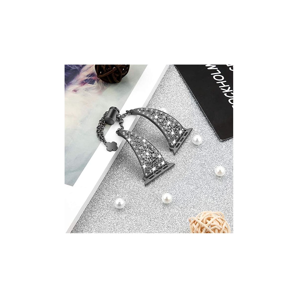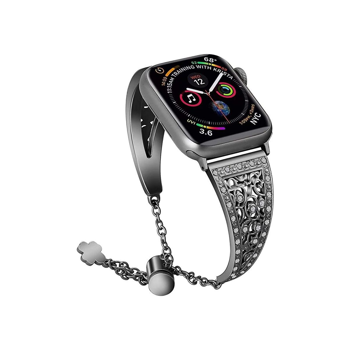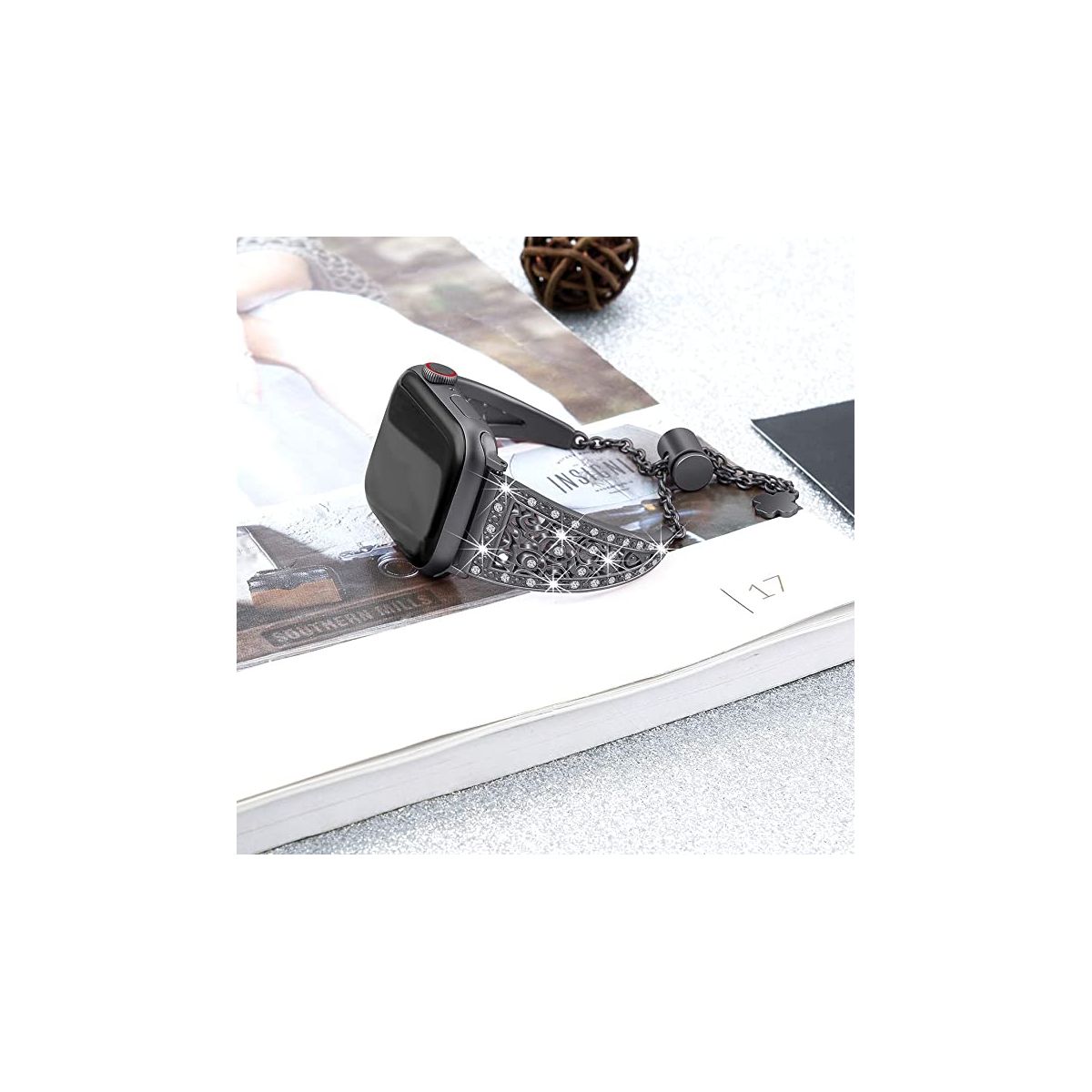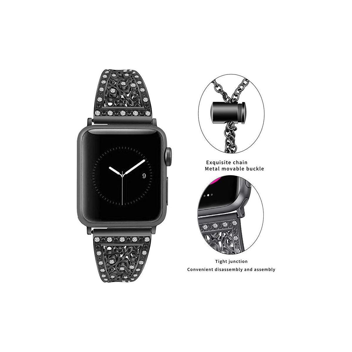 "Bling Alloy Metal Bands Compatible with Apple Watch Band 38mm 40mm 41mm and 42mm 44mm 45mm 49mm iWatch Series 8/7/6/5/4/3/2/1 and SE. Dressy Jewelry Diamond Cuff Bracelet Bangle Wristband for Women Girls, Easy to adjust Apple Watch Size: 38mm/40mm/41mm and 42mm/44mm/45mm Compatible with Apple Watch Series: Series 8, 7, 6, 5, 4, 3, 2, 1 & SE High quality alloy metal, well polished, dressy Apple Watch band made of premium alloy metal and wrapped in high-quality rhinestones, the inlaid diamond is firm and reliable, not easy to fall off, each small diamond shines with dazzling light, making people unable to take their eyes off. Unique design makes it a sleek and robust daily companion.
