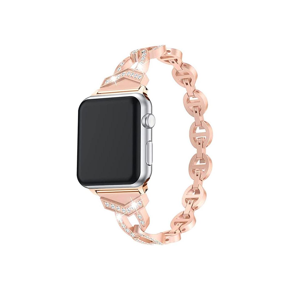 Worryfree Gadgets Metal Band for Apple Watch 38/40/41mm Sleek O-Links with Full Bling Rhinestones-Rose Gold