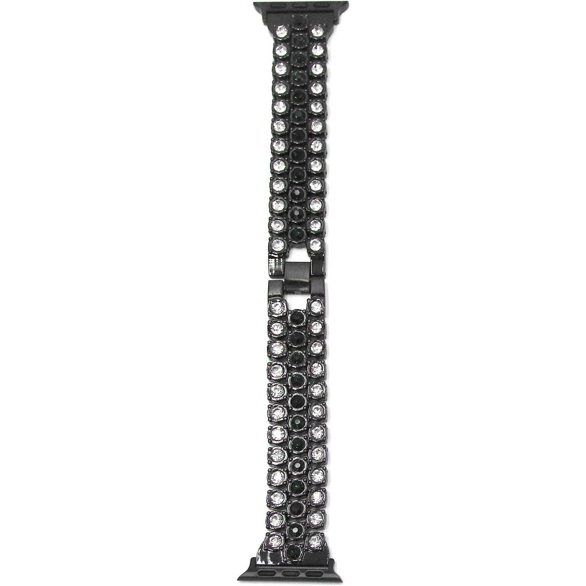 Worryfree Gadgets Metal Band for Apple Watch 38/40/41mm with Full Diamond Rows, Pink/Black