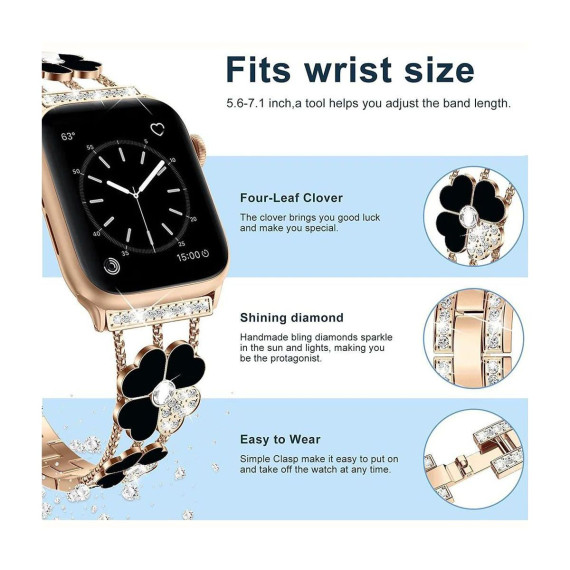 Elevate your Apple Watch with the Worryfree Gadgets Metal Band featuring a stylish Clover Design. Crafted with precision, this band seamlessly merges aesthetics with functionality, providing a sophisticated accessory for your tech companion. This luxurious watch band features the most popular four-leaf clover design, symbolizing luck and hope. It will be the perfect combination of personality and fashion.