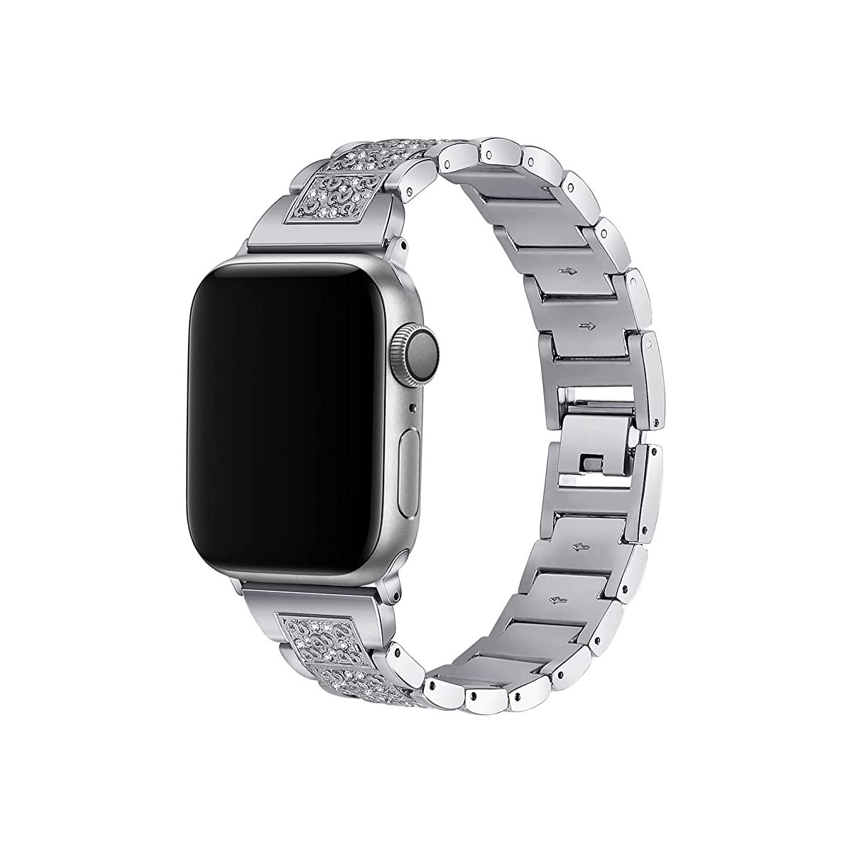 Worryfree Gadgets Metal Band with Rhinestones for Apple Watch Band 38/40/41mm, 42/44/45mm iWatch Series 8 7 6 5 4 3 2 1 & SE - 38/40/41mm - Black