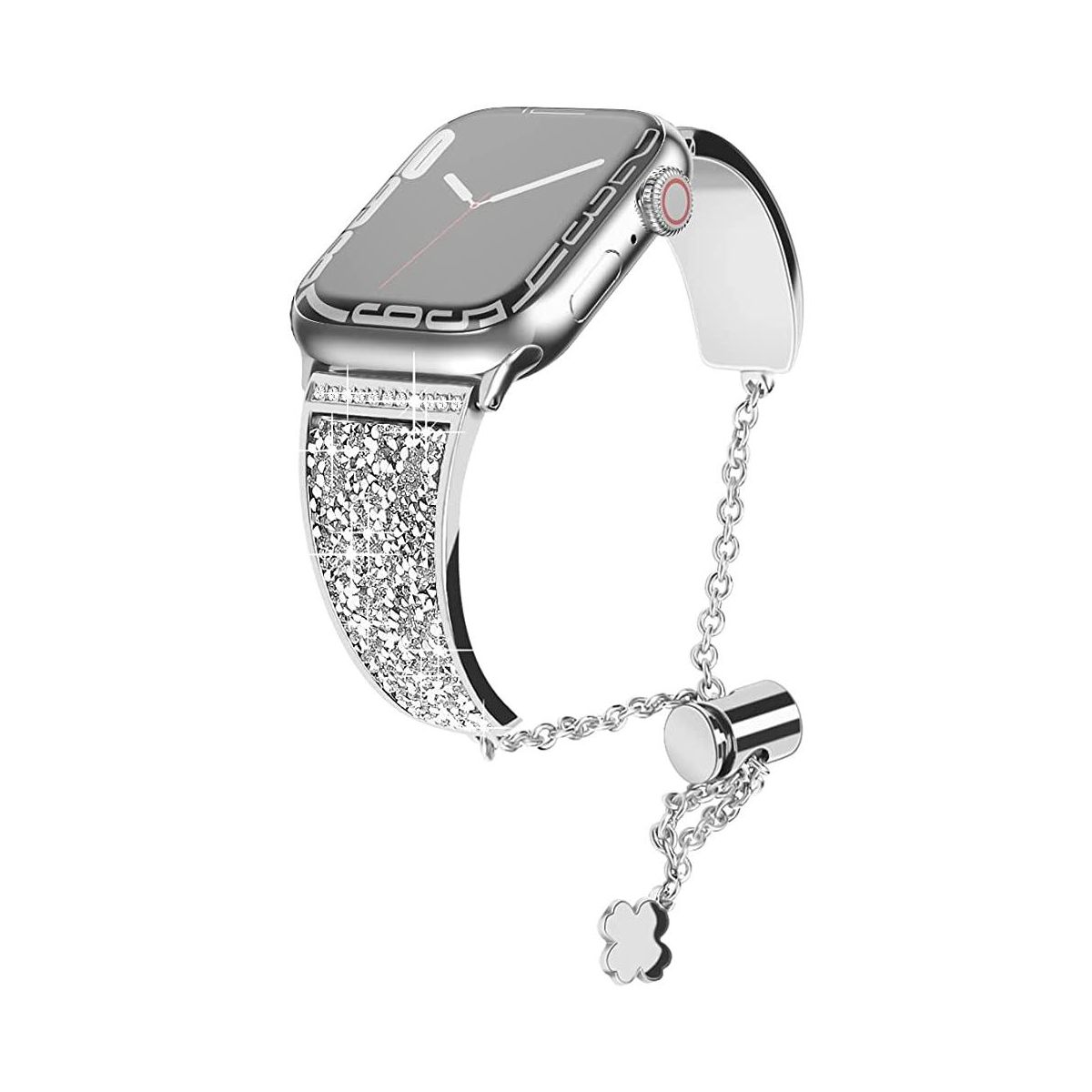 Worryfree Gadgets Metal Bling Band Compatible w/ Apple Watch Band Stainless Steel with Crystals iWatch Series 8 7 6 SE 5 4 3 2 1 - 38/40/41mm - Silver