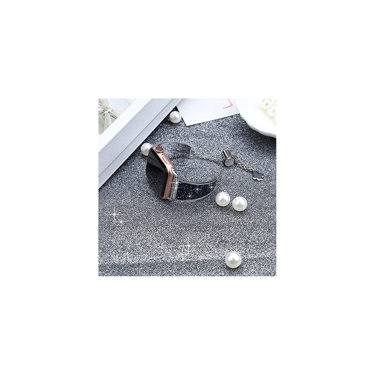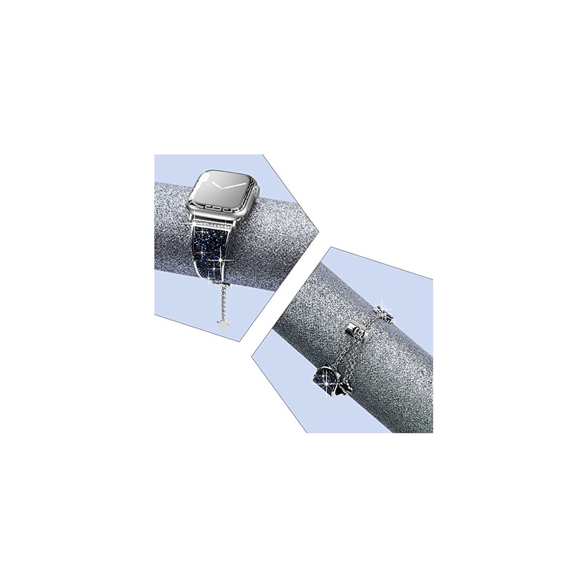 "Crystals never comes off- With advanced adhesive process, the crystals are permanently glued on the band and will never come off. Made of premium stainless steel with fine polish, unique color, beautiful and luxurious, smooth, breathable, and comfortable to wear. No sharp edges at all. Give yourself a gift with the Worryfree Gadget metal blink apple watch band.