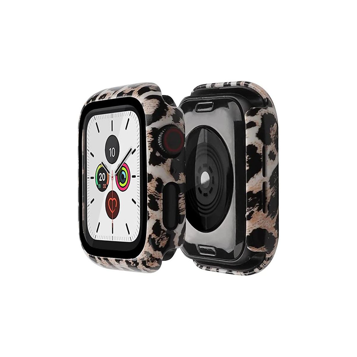 Worryfree Gadgets Protective Bumper Case with Glass Screen Protector Compatible with Apple Watch 38mm, White Leopard