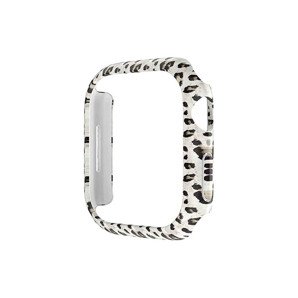 Worryfree Gadgets Protective Bumper Case with Glass Screen Protector Compatible with Apple Watch 38mm, White Leopard