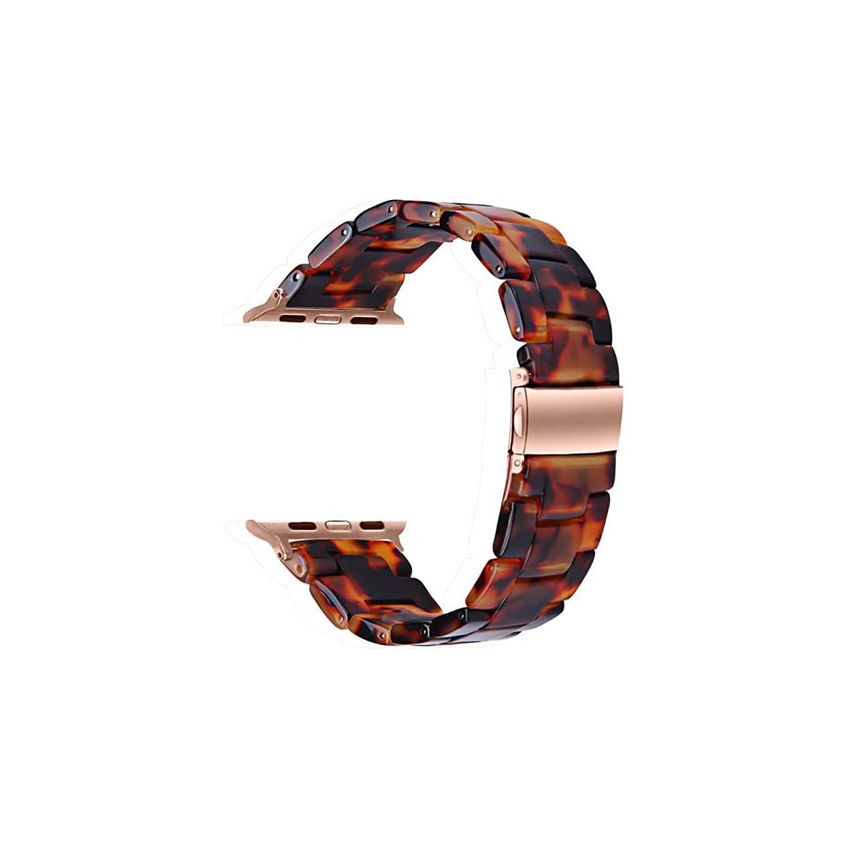 Worryfree Gadgets Resin Band for Apple Watch 42/44/45/49mm with Butterfly Buckle Claps-Tortoise Shell Design - Brown Tortoise